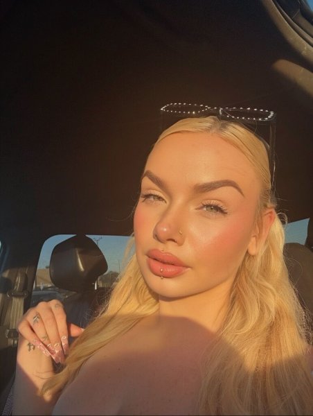 blonde bombshell with curves for days and eyes that pierce right through