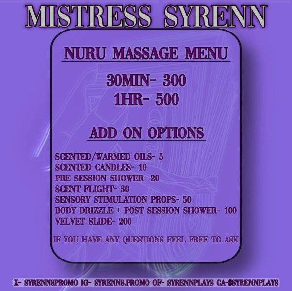 ๐ฒ To connect, use the info on this ad or find me on X: SyrennsPromo. Send "Massage" to embark on this journey ๐ค.
